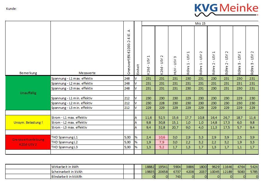 Sie erhalten abhängig vom Betreibermodell jeden Wochen-/Monatsanfang eine Auswertung Ihrer Spannungsqualität